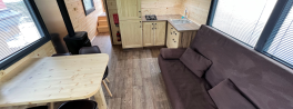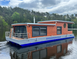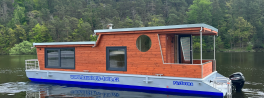 Vybavení hausbotu:Kuchyňská linka, plynová varná deska, dřez s tekoucí vodou, lednička s mrazákem, hrnce, talíře, příbory, skleničky a úklidové prostředky. Jídelní stůl s židlemi. Krbová kamna.
