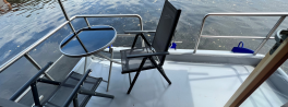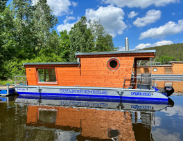 Vybavení hausbotu:Kuchyňská linka, plynová varná deska, dřez s tekoucí vodou, lednička s mrazákem, hrnce, talíře, příbory, skleničky a úklidové prostředky. Jídelní stůl s židlemi. Krbová kamna.
